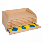 Die Kommode besteht aus sechs Schubladen, in denen sich 35 verschiedene geometrische Figuren befinden. Es dient zur Vorbereitung auf Geometrie.