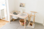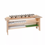 Verstellbarer Tisch für die Arbeit mit Glocken-Set und Klangstäben.